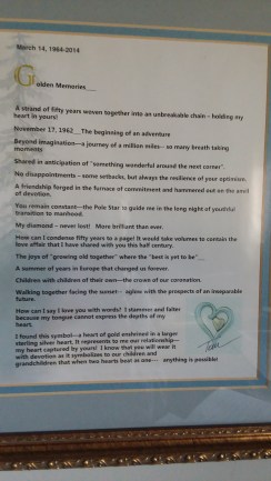 Tom always reads my blog drafts and gives advice. He is not comfortable being the topic for this one… I would be the topic if he were writing this, he said. So I am ending with his words, his gift he presented me on our 50th anniversary.
